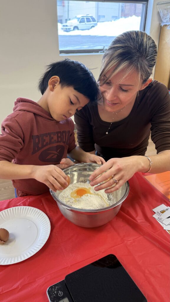 Following a recipe is a sequencing task. “First we do this, then we do that, finally we see this result” is the same narrative structure as a story. Cooking naturally builds the vocabulary of process (before, after, meanwhile, until), the vocabulary of description (smooth, lumpy, golden, fragrant), and the habit of paying close attention to instructions — all of which are foundational literacy skills. For children in our World Languages program, naming ingredients and actions in Spanish, French, or Mandarin during cooking activities creates some of the richest language acquisition moments of the school day.